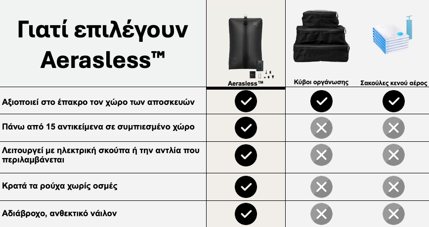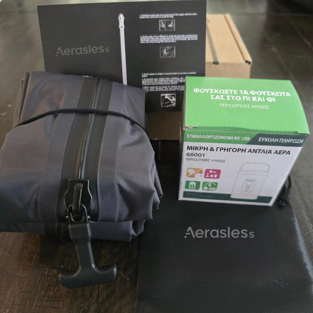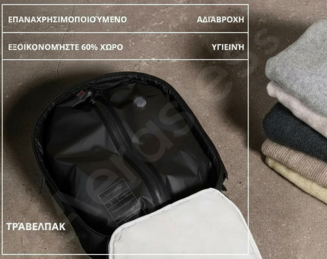 Το σετ κενού αέρος μας λειτουργεί με κάθε τσάντα που ήδη έχετε, προσφέροντάς σας περισσότερο χώρο, καλύτερη οργάνωση και λιγότερο άγχος στα ταξίδια σας.