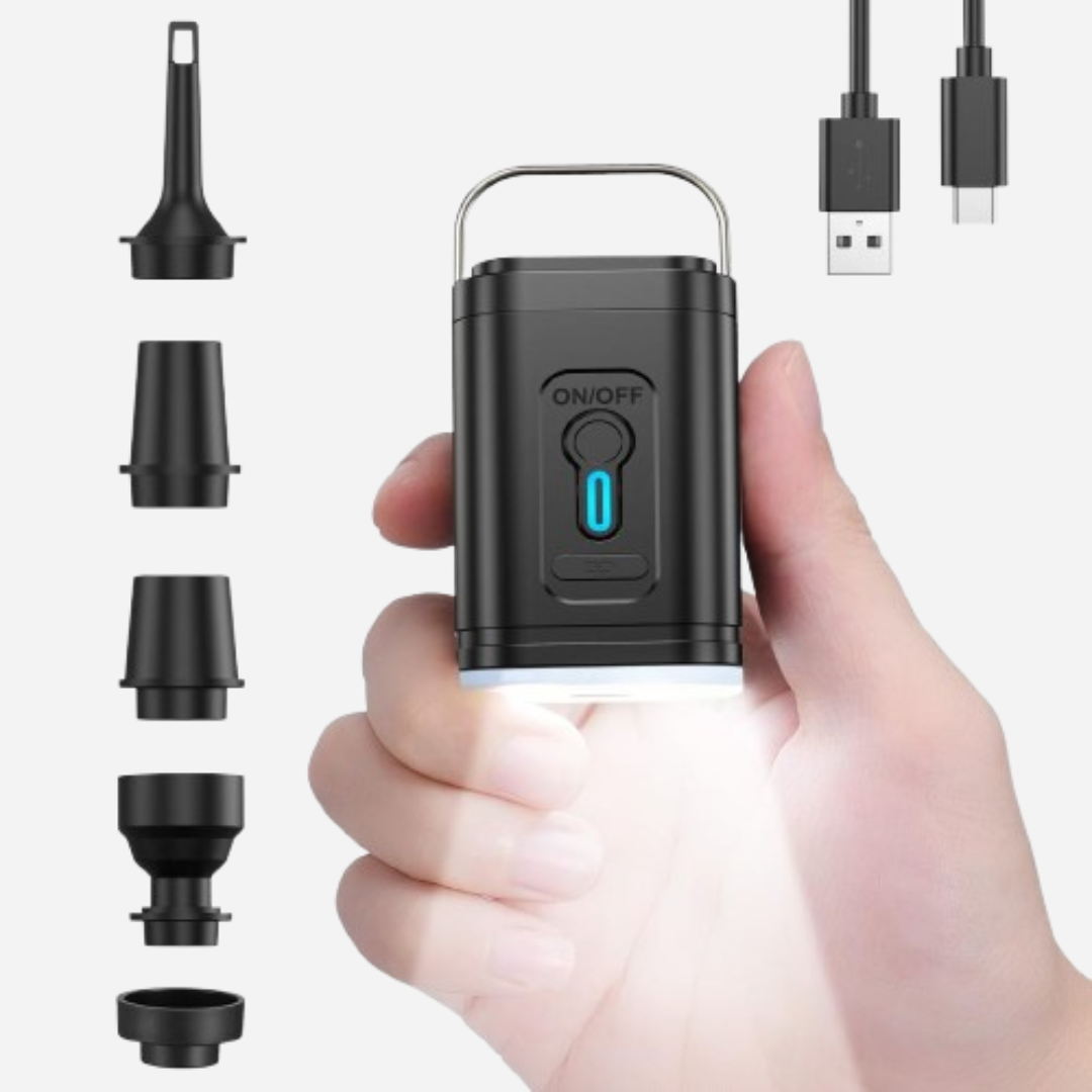Ταξιδέψτε ανάλαφρα με μια compact, επαναφορτιζόμενη τρόμπα που διαρκεί για 15 ταξίδια με μία μόνο φόρτιση. Ξεχάσατε την τρόμπα σας; Κανένα πρόβλημα — χρησιμοποιήστε οποιαδήποτε ηλεκτρική σκούπα για γρήγορη συμπίεση.